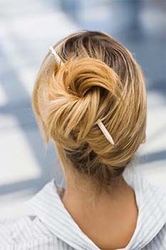 The hair at end of the twist can be tucked inward into the twist near the crown using pins. Or you can leave it as a swooping roll at the top. You can curl the hair sticking out on the sides for a formal look or leave it, as it is, so as to get a casual look. You can use hair accessories like decorative pins, rhinestone or any fancy clips to decorate your hair around the French twist hair. Use 'maximum hold hairspray' to keep the twist in place.